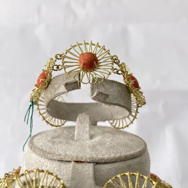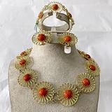 18k gold and coral necklace, bracelet and earrings set