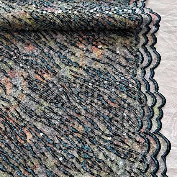 Torquoise foil stamped chantelle with clear sequins